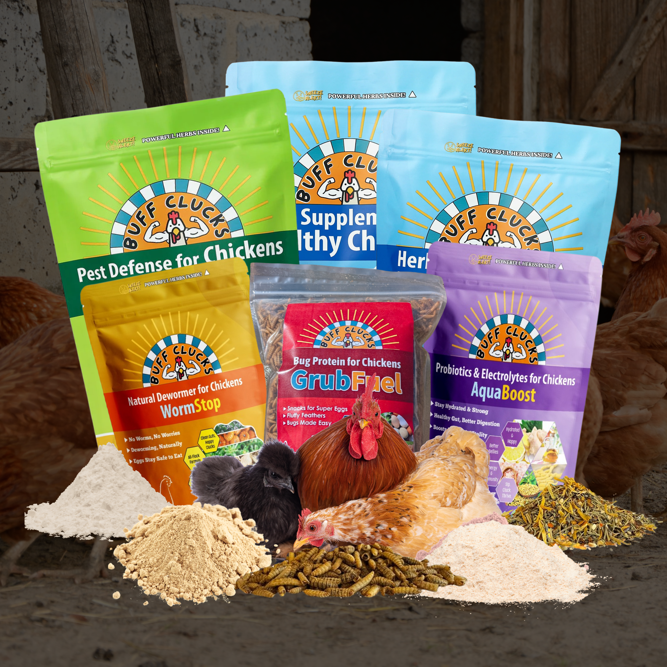 Herbs aren’t just for seasoning your dinner; they’re also a chicken’s best ally! Natural herbal supplements like our Herb Supplement, CoopShield, and AquaBoost scattered throughout your daily routine can aid digestion, boost immunity, and even help balance the cecal environment.