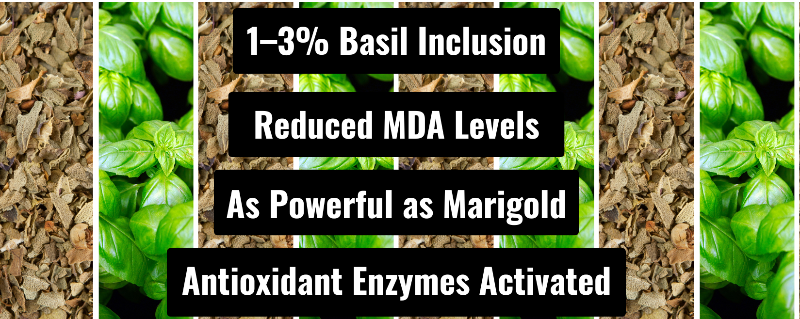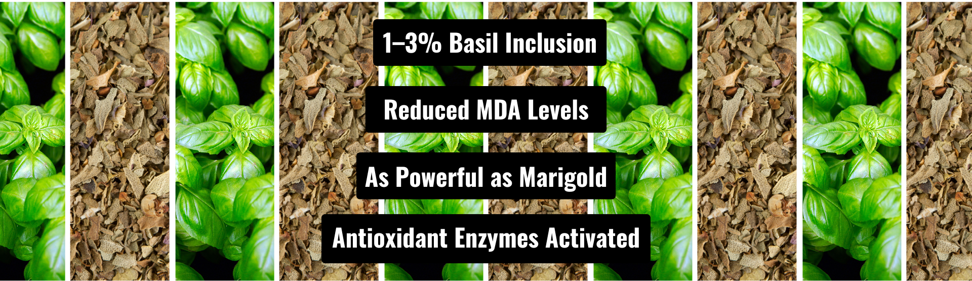 A Gold Standard in Poultry Antioxidants. The antioxidant performance of basil closely matched that of marigold, a well-established feed additive known for protecting yolks and enhancing pigmentation.