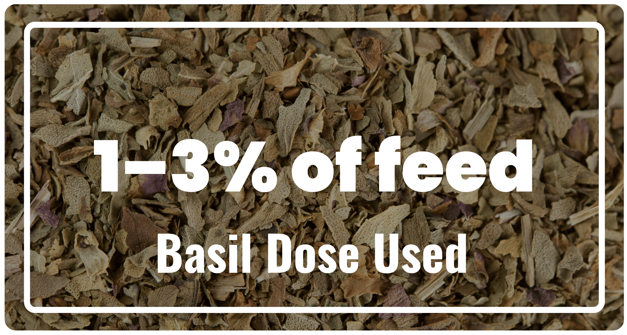 The basil was added to the hens' diet at 1% to 3% of total feed, a safe and effective inclusion rate shown to deliver measurable antioxidant benefits without adverse effects.