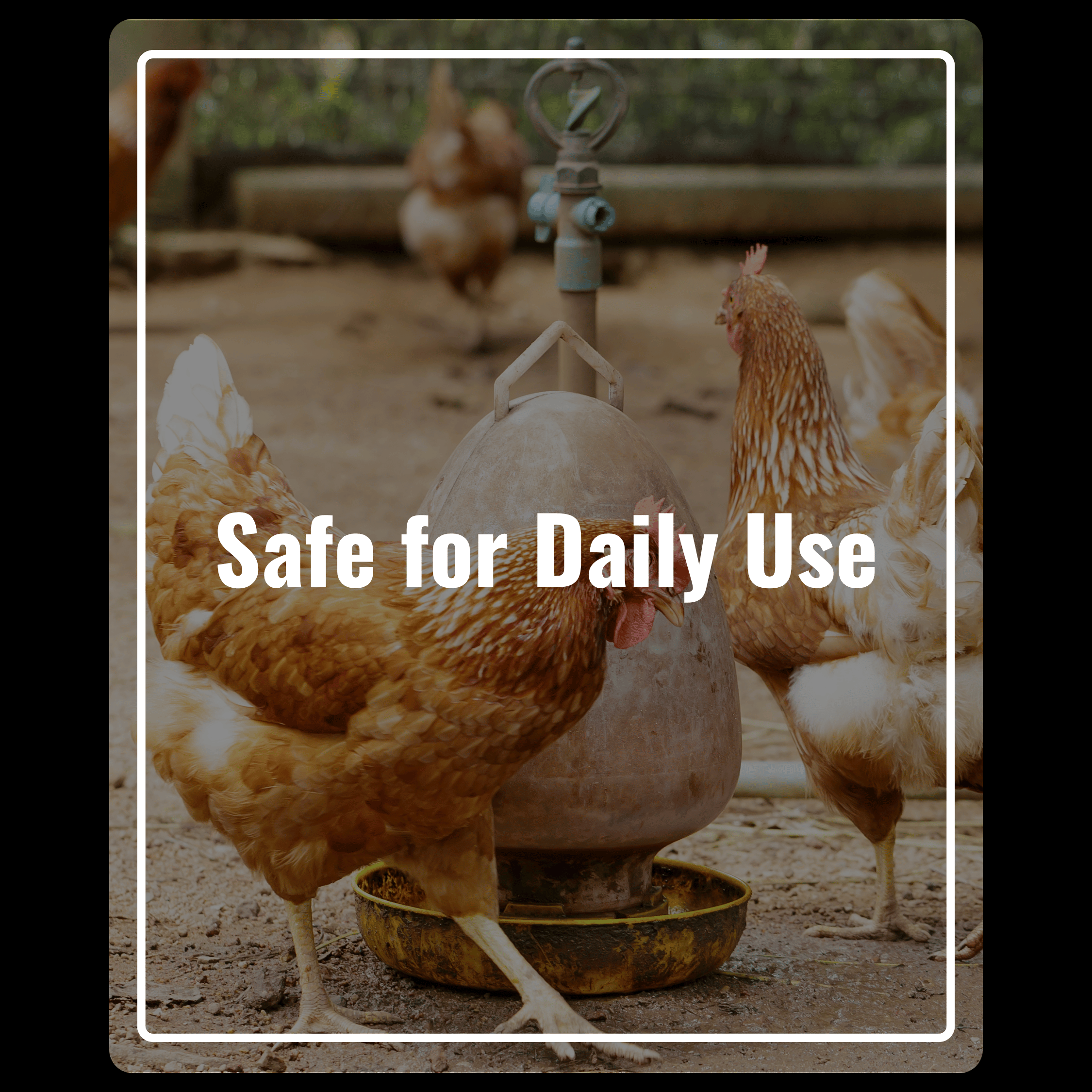 Basil scientifically proven safe for daily use in poultry. Multiple studies confirm (Abbas 2010) that doses up to 3% of total feed or 0.05% basil essential oil showed no signs of toxicity or adverse effects.
