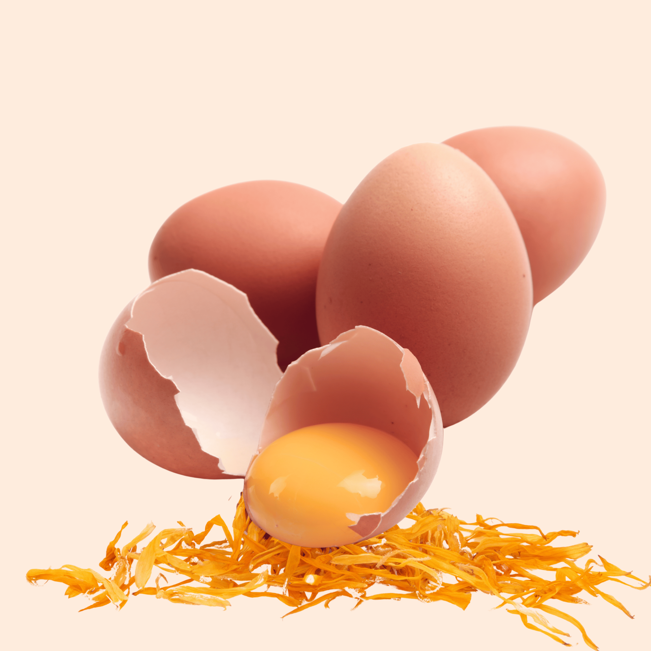 Calendula-fed hens laid eggs rich in natural pigments like lutein and beta-carotene. With 100% natural results, with zero synthetic additives.
