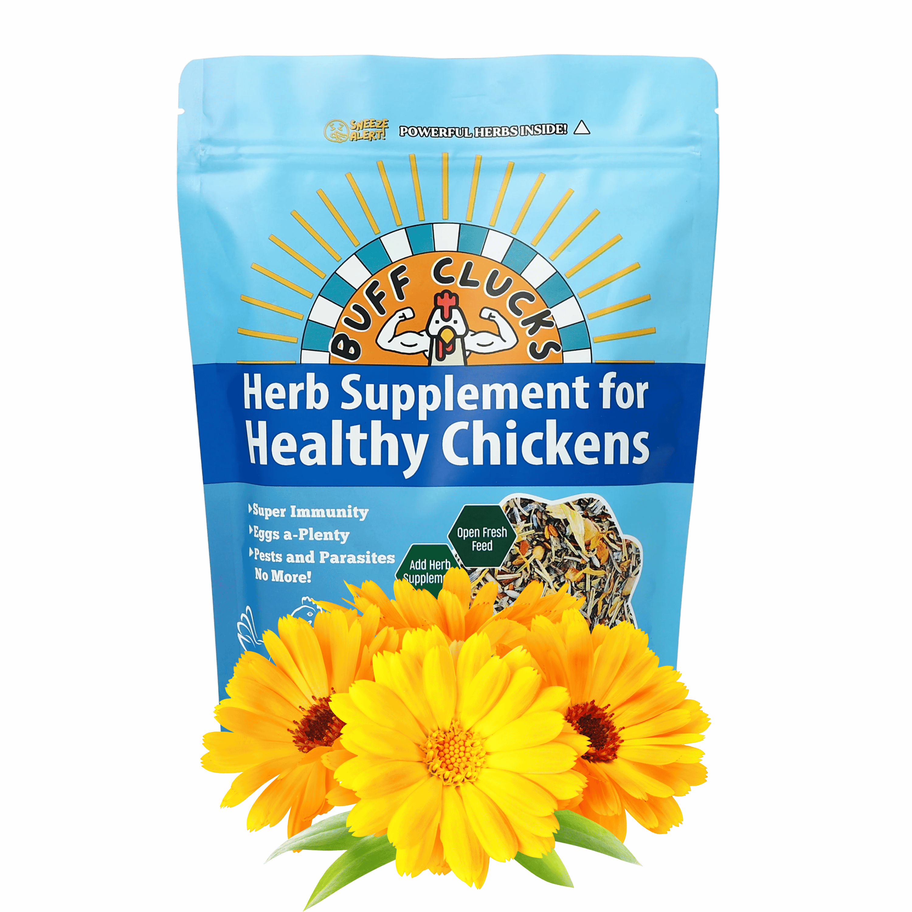 That’s why we added Calendula to Buff Clucks Herb Supplement, it’s a simple, natural way to help your chickens lay fresher eggs, recover faster, and feel their best every day.