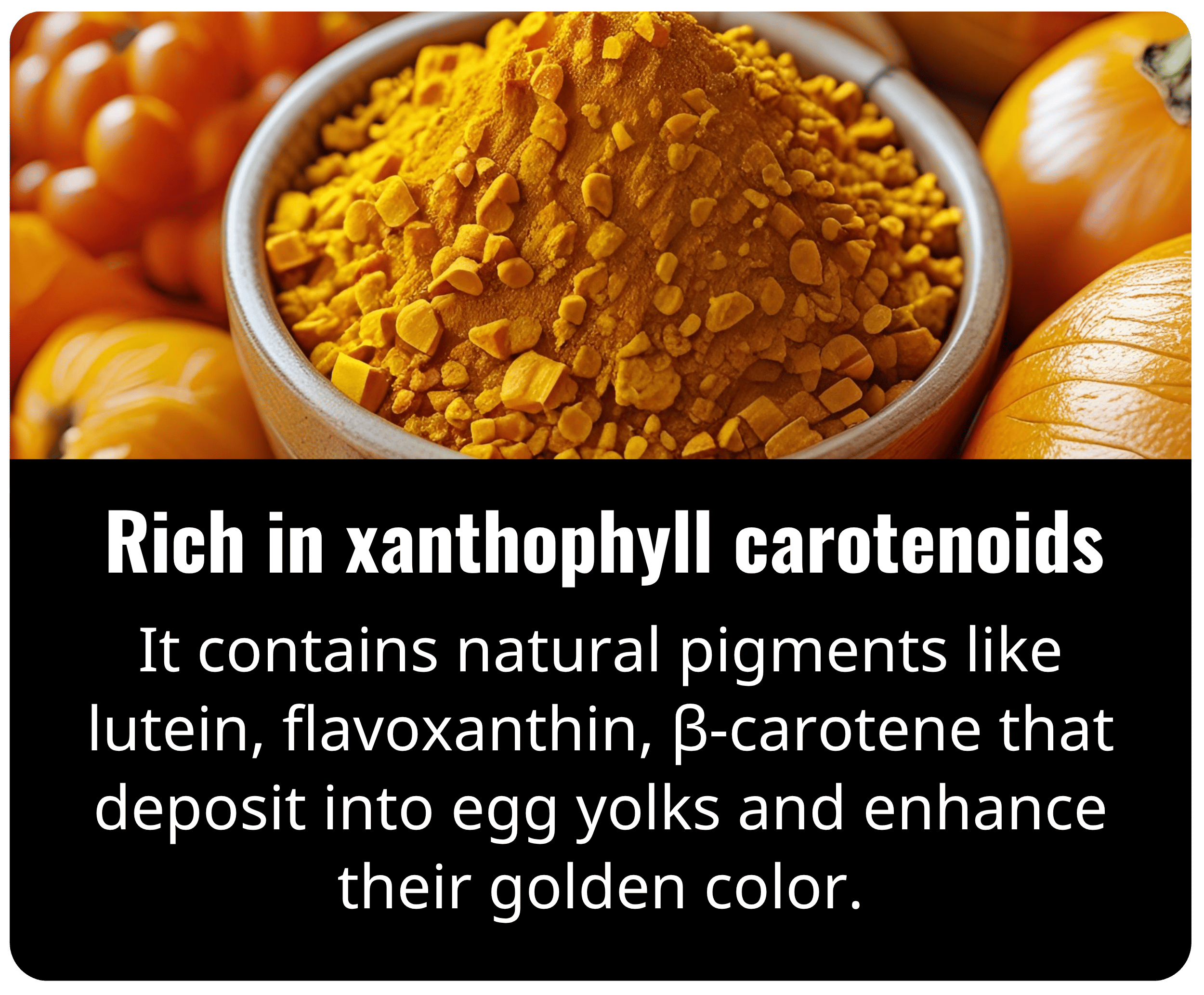 Calendula boosts your birds’ internal antioxidant levels fighting stress, supporting tissues, and keeping yolks stable and fresh.