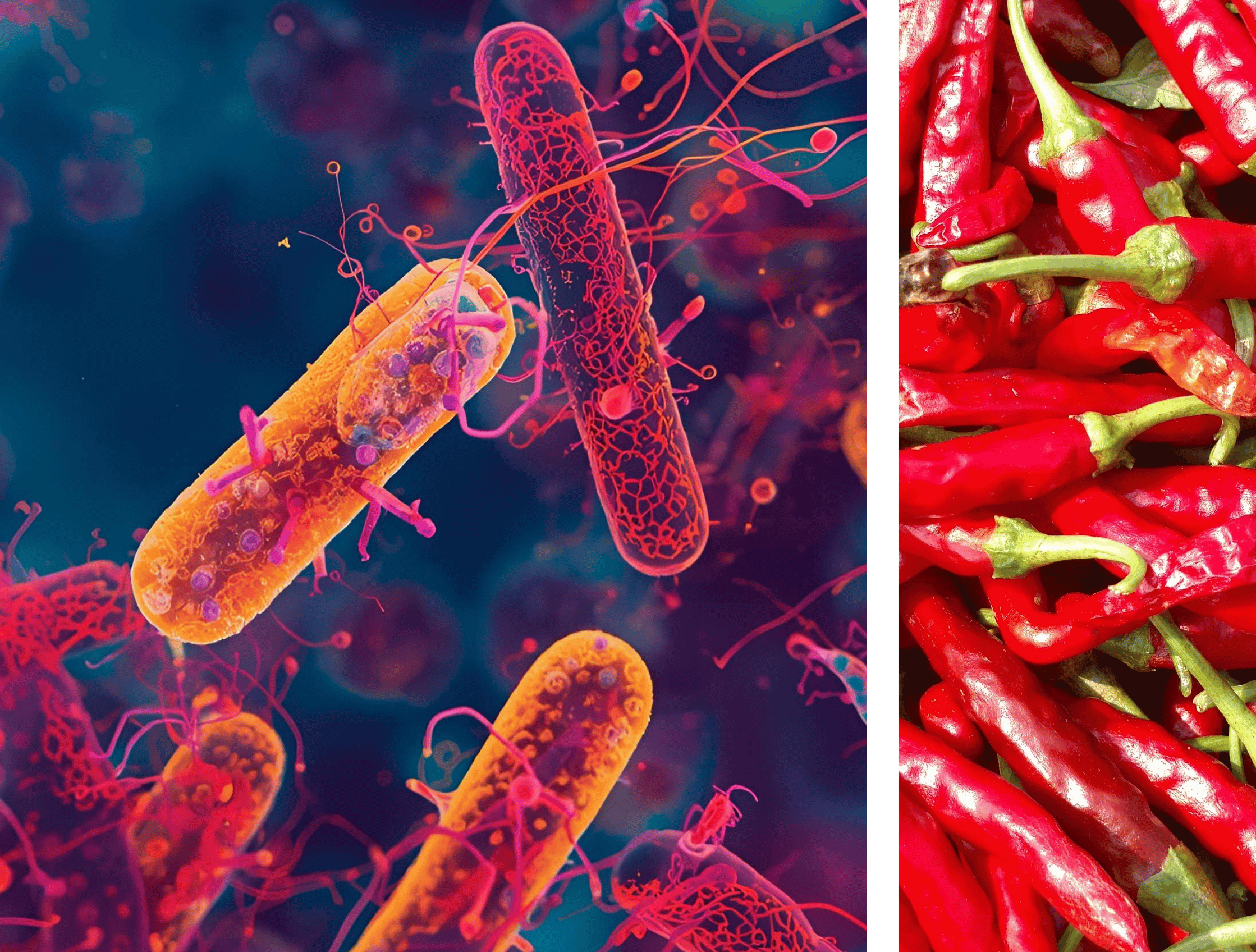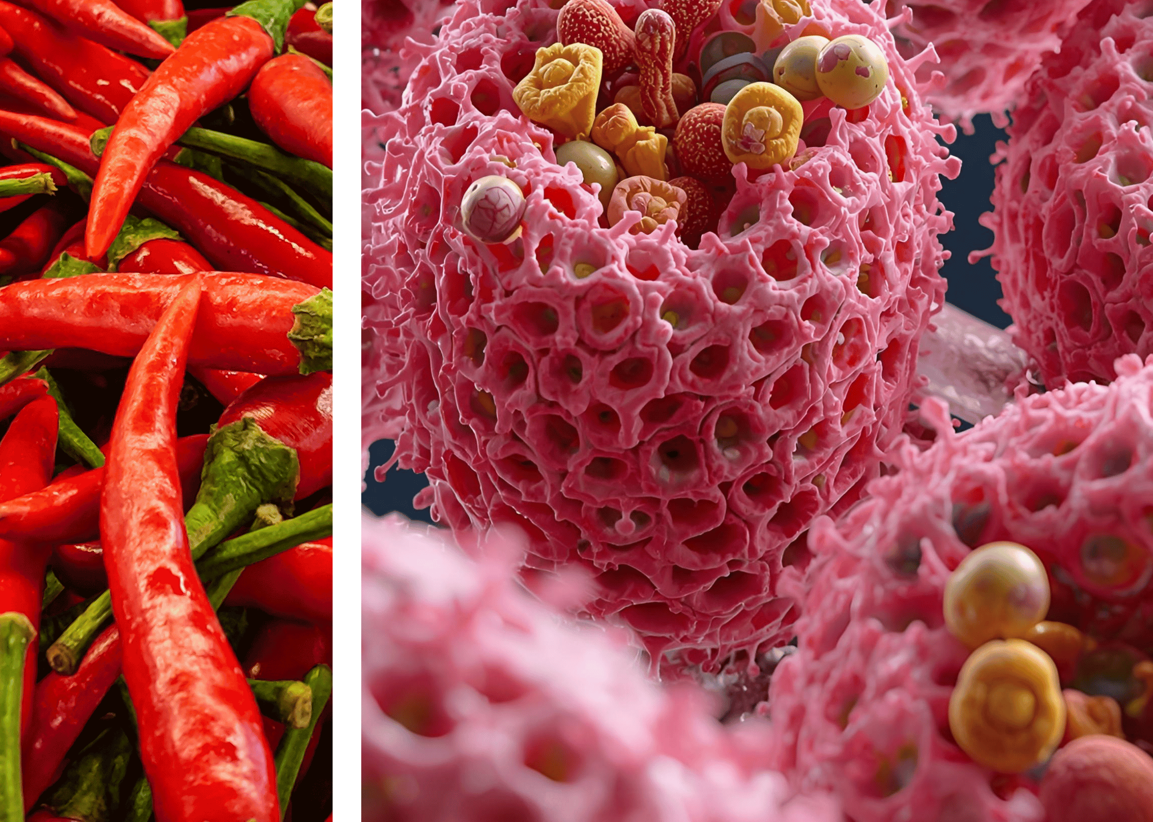 Red Pepper's active compound capsaicin helps block harmful bacteria like E.coli and Salmonella while protecting the gut lining. They developed better intestinal villi which help chickens absorb nutrients more efficiently and stronger and the face of disease challenges.