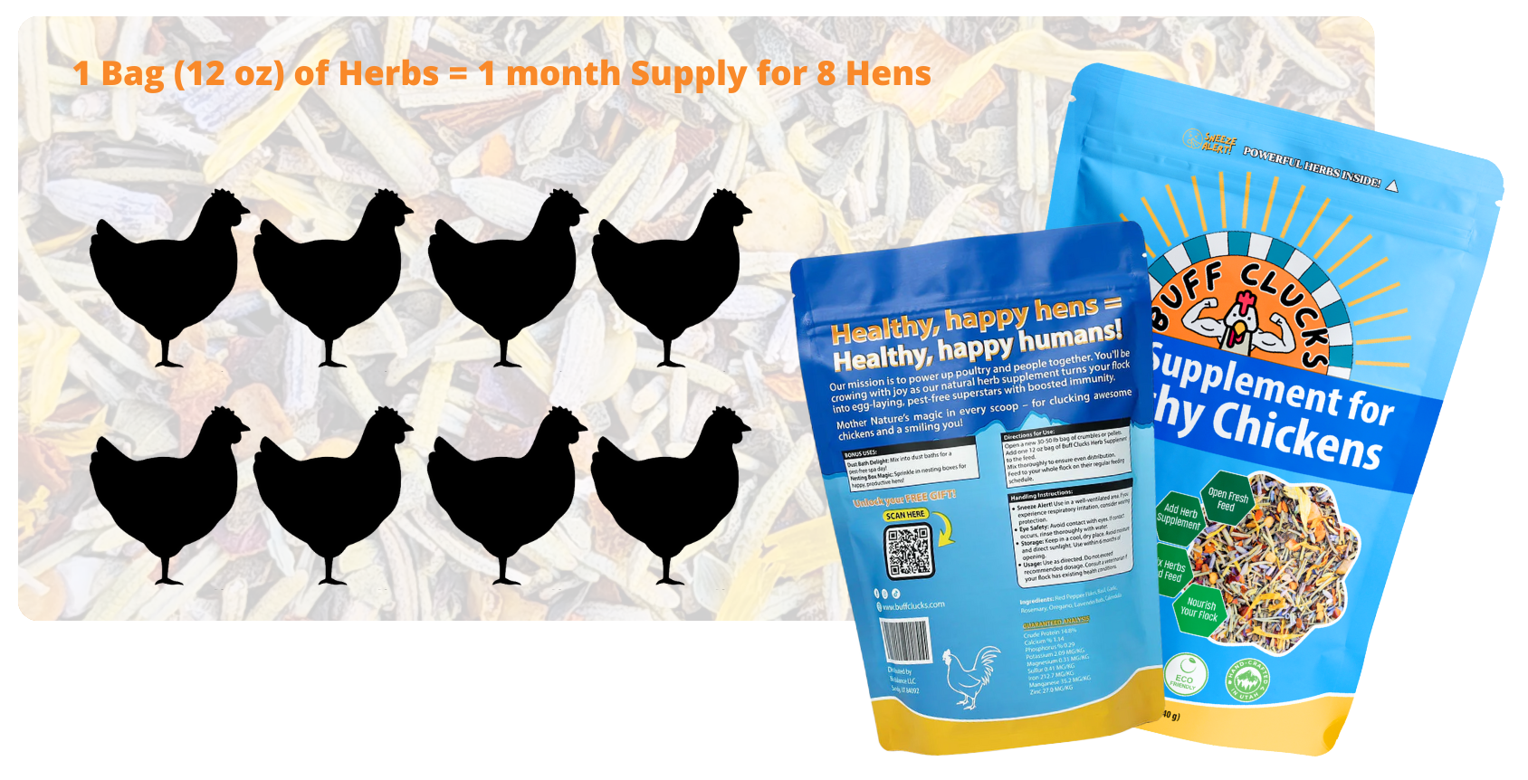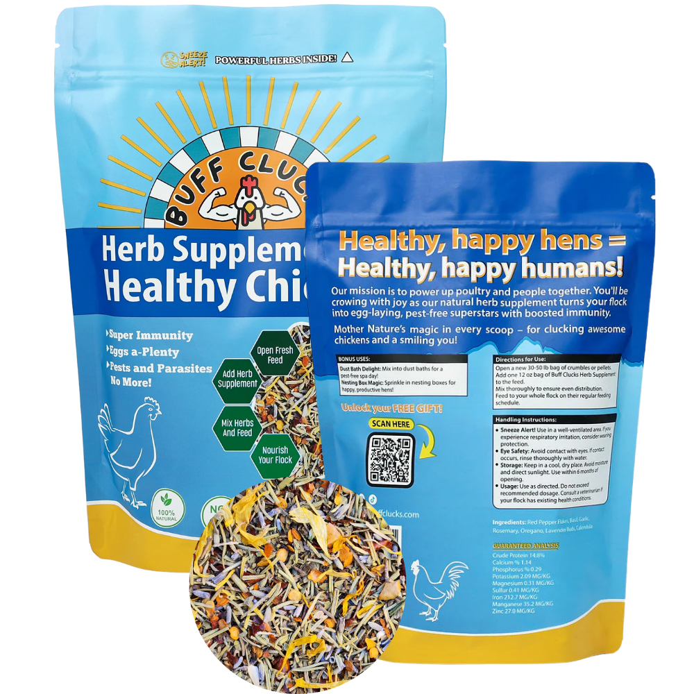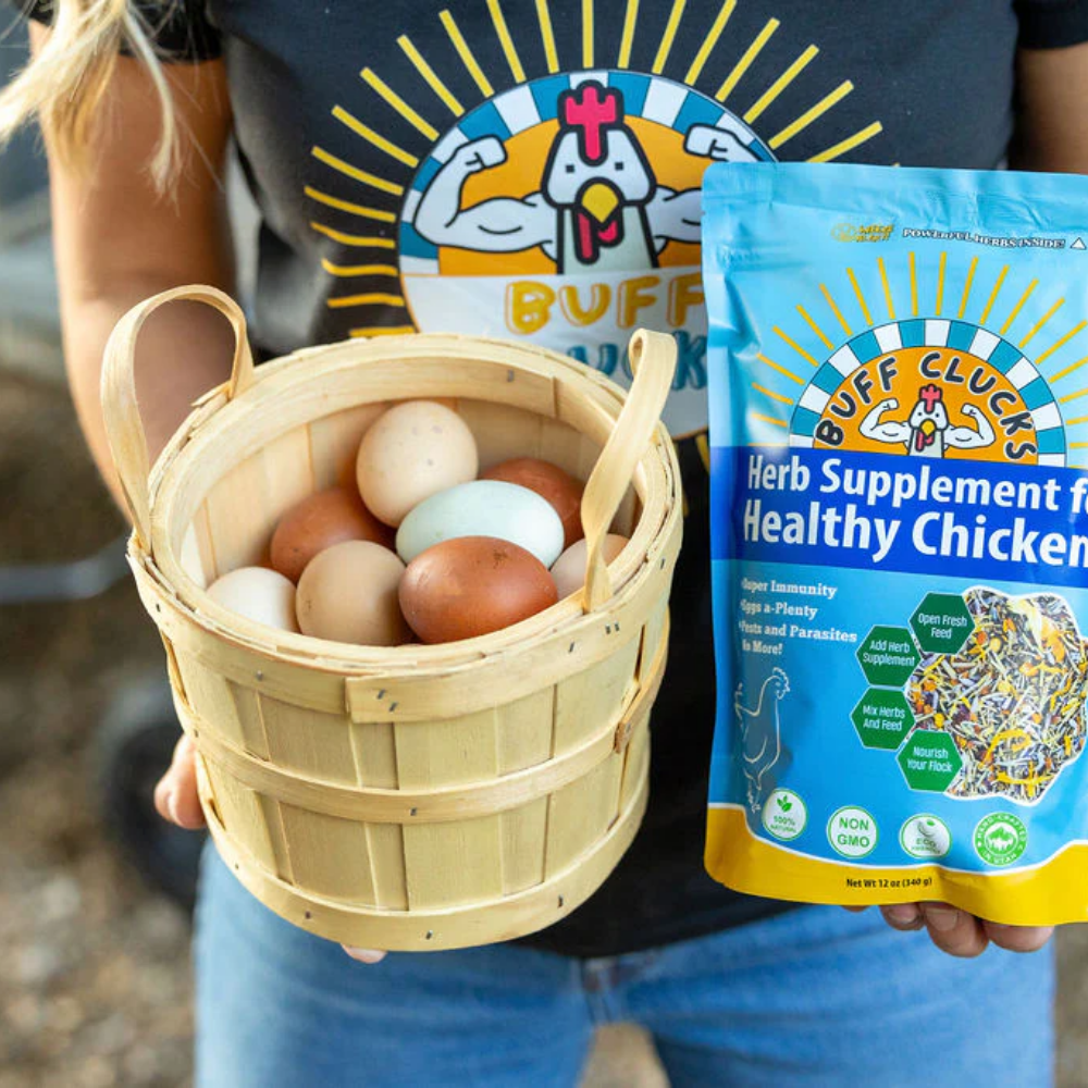 Chickens love Buff Clucks! The aromatic herbs naturally attract them, making it an enjoyable and beneficial addition to their feed.